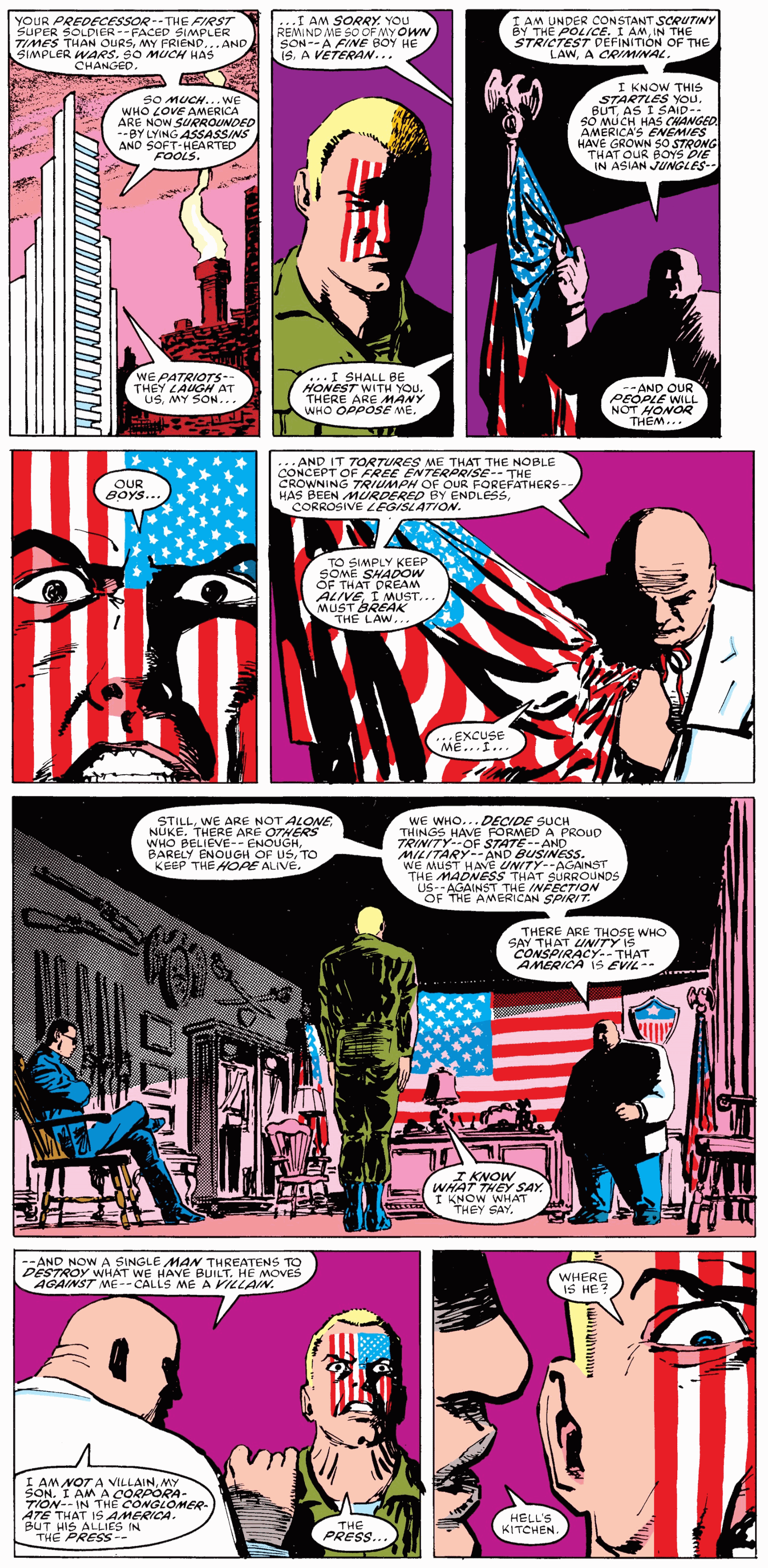 It is unclear to me how we got where we are today. But echoes of this appeal to nationalism in Poland, and in Venezula, offer clues. We brought fact checkers to a culture war… and we lost. During the election campaign, I was strongly reminded of Frank Miller’s 1986 Nuke story arc, which I read in Daredevil as a teenager – the seductive appeal of unbridled nationalism bleeding across the page in stark primary colors.