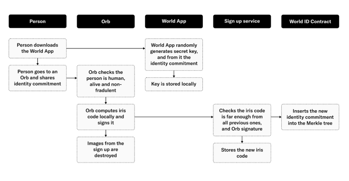 - Tools for Humanity will store the mapping between each iris code and the corresponding “identity commitment”, which is essentially the public component of your ID credential.