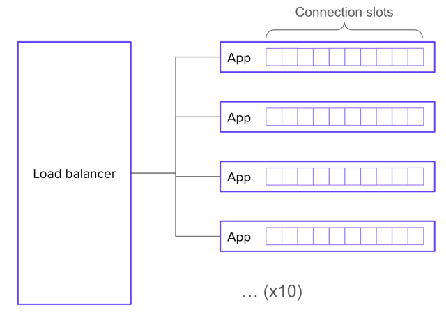 But what if your web server doesn’t have any queueing built in? Then is there no queue? Of course not. There must be a queue, because the conditions for queue formation are still met. The queue may again take the form of a SYN backlog (but this time on the web server’s socket instead of the application’s socket). Or, it might get bumped back out to the load balancer (in which case, you’ll need a much bigger queue).