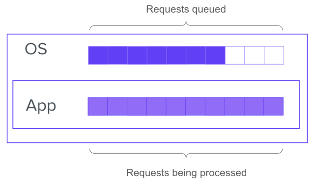 But that doesn’t mean there isn’t a queue! Instead of forming inside the application, a queue will form in the SYN backlog of the underlying network stack: