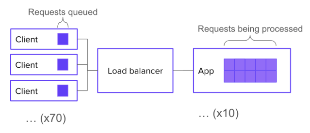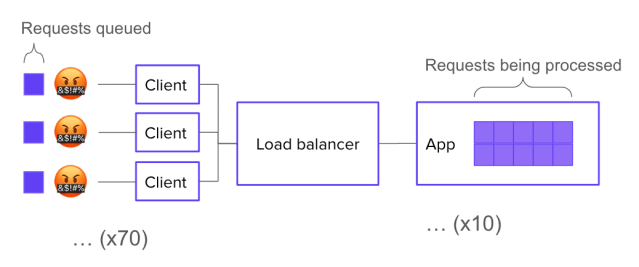 Now let’s say you have 170 requests in flight. 100 of those requests are actively being processed. What happens to the other 70?