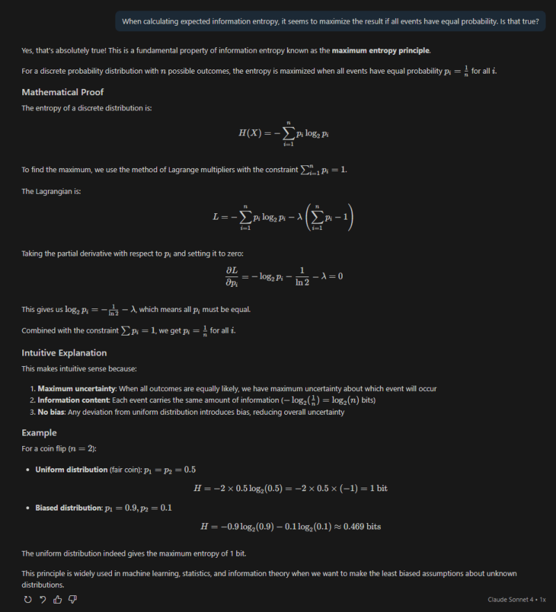 The video shows the link between probability and information entropy and a great takeaway from it is that you can use these concepts to decide what kind of experiments to do, to get as much information as possible. This could be useful if you are limited by time, computation, chemicals, or other resources. It seems like you could also mix this with “Fractional Factorial Experiment Design” somehow (https://blog.demofox.org/2023/10/17/fractional-factorial-experiment-design-when-there-are-too-many-experiments-to-do/).