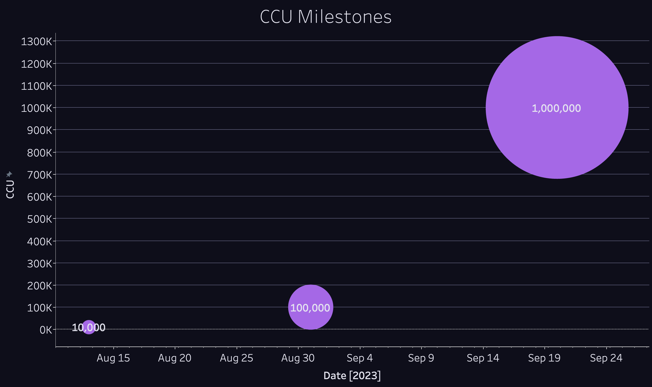 We broke the project up into 3 concrete milestones: 10k, 100k, and finally 1 million CCU.