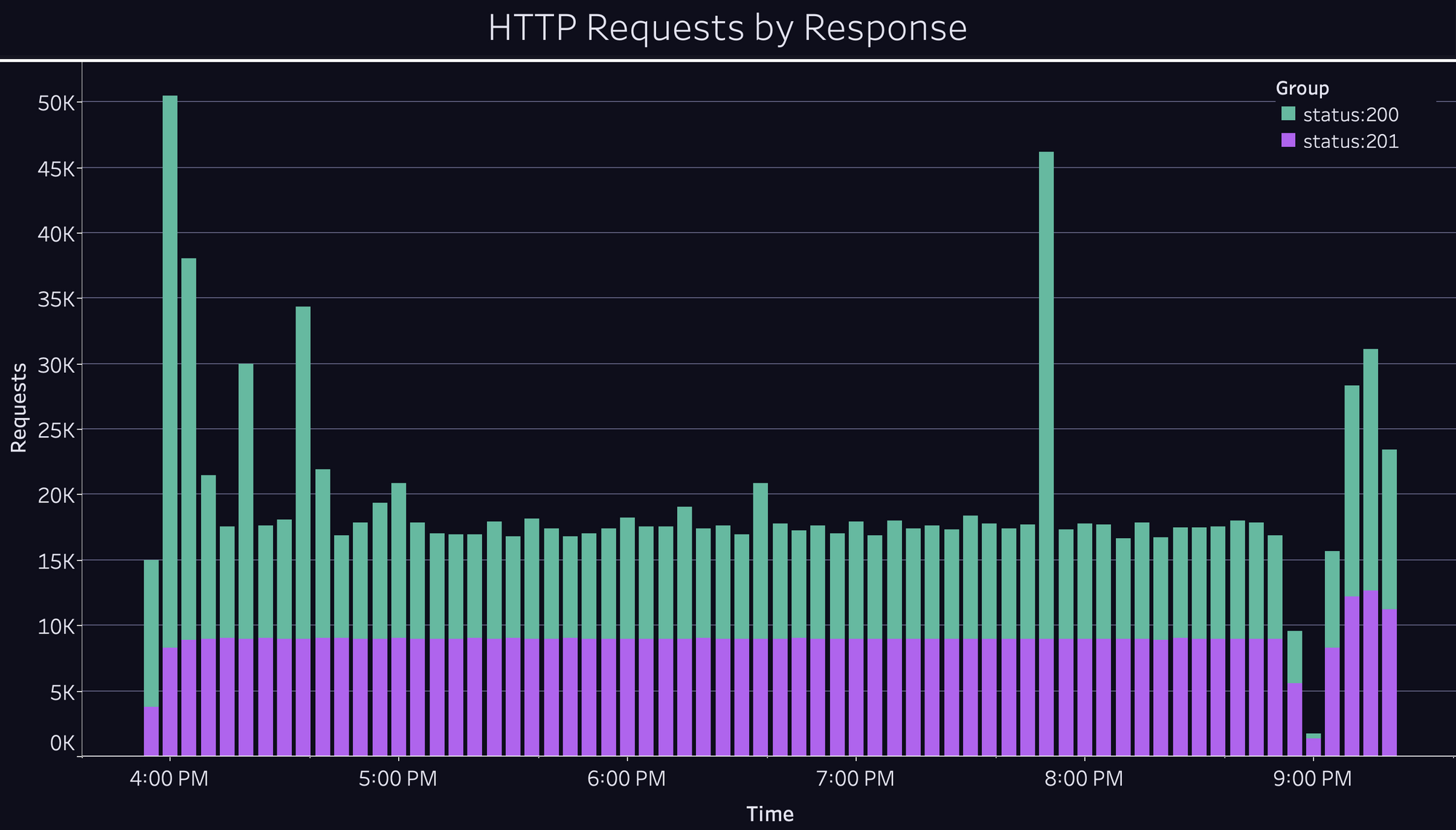The rate at which we created new rooms influenced both the duration of the test and the load it would put on our systems. In consultation with Frost Giant, we chose a rate of 30 new matches per second, or ~100k matches per hour.