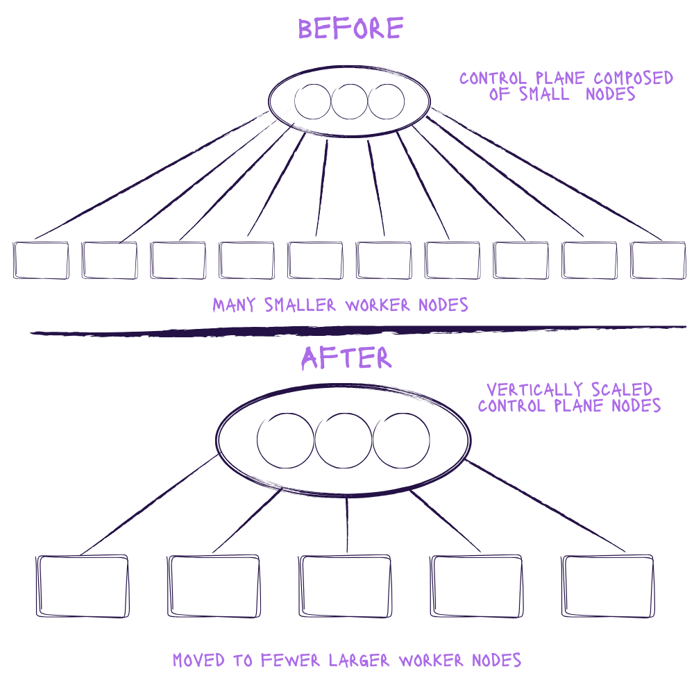 - Increased each individual node size to reduce the number of nodes the control plane has to manage.