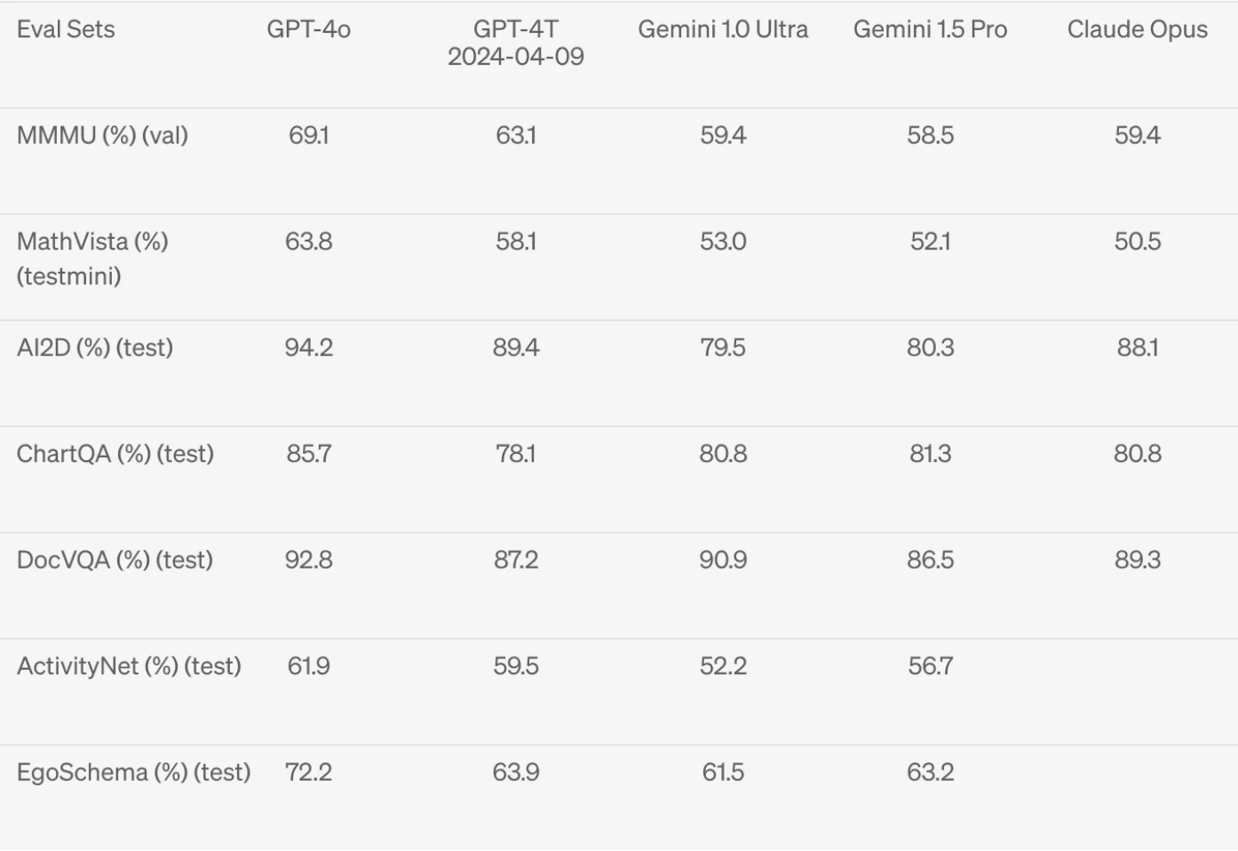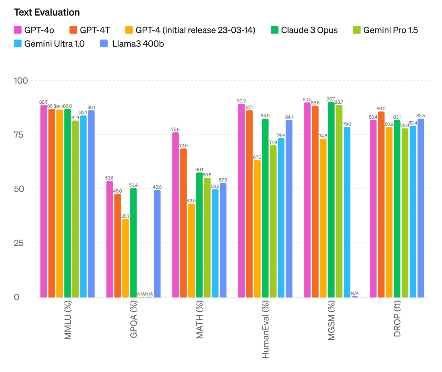 Note that in the text evaluation benchmark results provided, OpenAI compares the 400b variant of Meta’s Llama3. At the time of publication of the results, Meta has not finished training its 400b variant model.