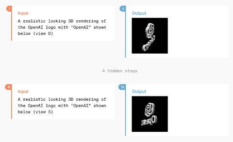 An exchange between GPT-4o where a user requests and receives a 3D video reconstruction of a spinning logo based on several reference images