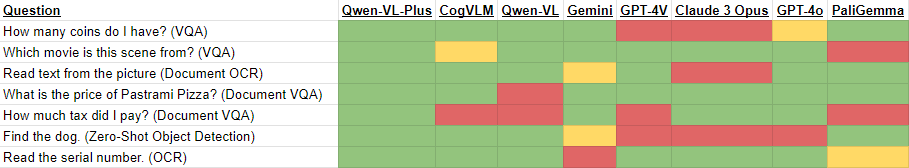 GPT-4o the answer of five coins. However, when retried, it did answer correctly. This change in response is a reason a site call GPT Checkup exists – closed-source LMM performance changes overtime and it’s important to monitor how it performs so you can confidently use an LMM in your application.