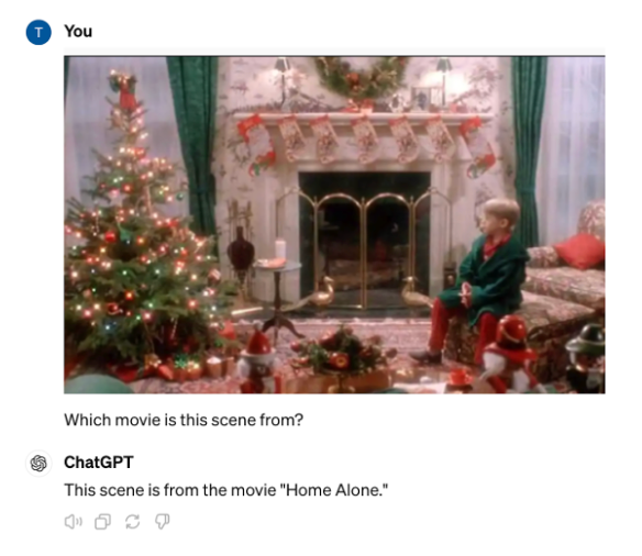 Further, GPT-4o correctly identifies an image from a scene of Home Alone.