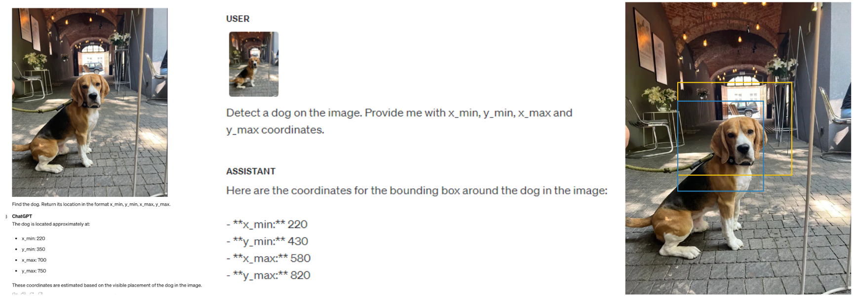 Finally, we test object detection, which has proven to be a difficult task for multimodal models. Where Gemini, GPT-4 with Vision, and Claude 3 Opus failed, GPT-4o also fails to generate an accurate bounding box.