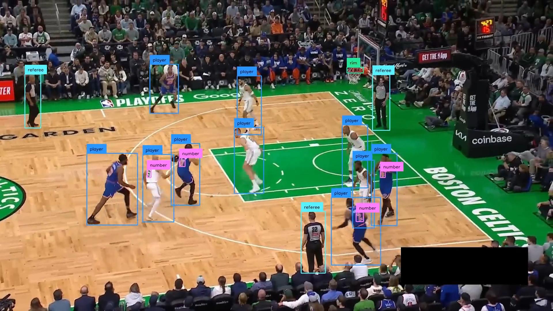 For player recognition, we rely on the number class together with all player-related classes (such as player, player-in-possession, player-jump-shot, player-layup-dunk, and player-shot-block). The remaining classes are not needed here but are useful for other tasks like detecting shots and judging whether a basket was made, which we will cover in a separate tutorial.