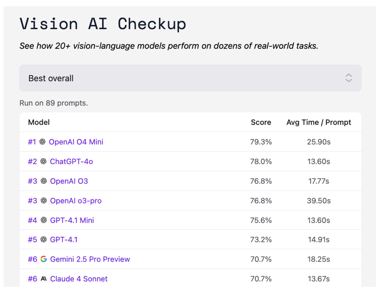 To learn more about how the model performs on our tests, refer to the OpenAI o3-pro Vision AI Checkup model page.