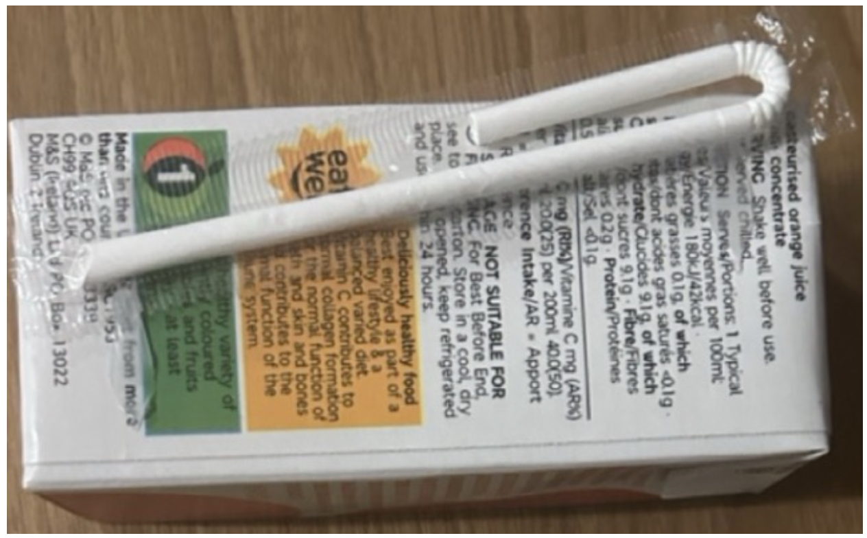 We also ran a label quality test on an image of a juice box, asking “Does the juice box package show an orange eat well label? Return only yes or no.” with the following image:
