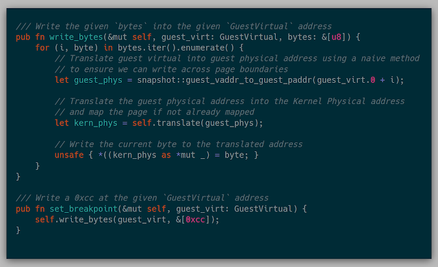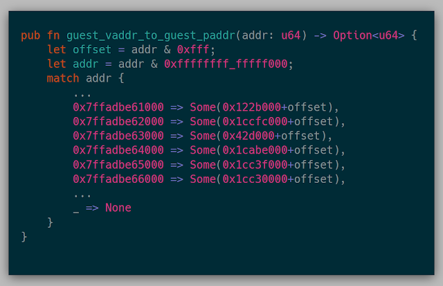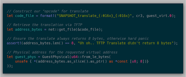 With these two new features, replacing the previous snapshot API was fairly simple. The previous snapshot::guest_vaddr_to_guest_paddr function now can work over the network: