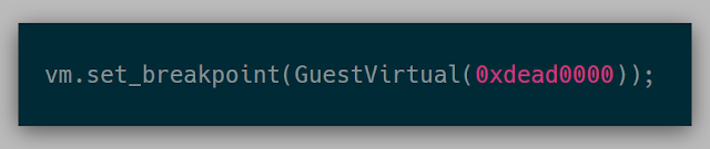This API was ambiguous as to whether I wanted a breakpoint at guest virtual address 0xdead0000 or guest physical address 0xdead0000. The API at this point looked like: