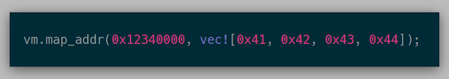 The API at this point for mapping memory looked like the following. Here, the guest physical address 0x12340000 contains the bytes 0x41, 0x42, 0x43, 0x44.