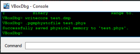 To my surprise, at this prompt if Ignore is clicked, the debugger comes into focus and commands can be used to produce a core dump and a physical memory dump from above. The current problem, though, is if we did a core dump now, the original instructions would be overwritten. Everything being the same though, this looked to be incredibly promising as a way to snapshot an entire system from a given userland location.