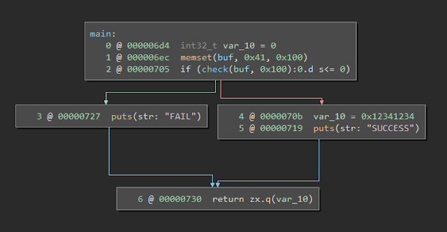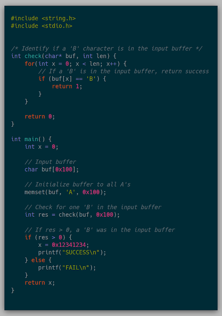 Without modifying the memory, the FAIL hit case is always hit. To check the initial goal, after creating the VM, modifying the input buffer should result in the SUCCESS hit case being hit.
