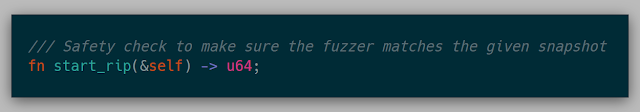 After being bit multiple times by mismatched snapshots and fuzzers, each fuzzer needs to verify itself by mentioning the starting address that it should start with. This is checked once the snapshot is shipped over the network.