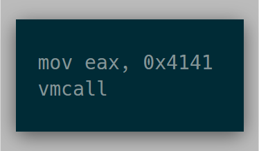 Assuming everything was set up properly, the vmcall instruction will cause the VM to exit, and the resulting eax value should read 0x4141.