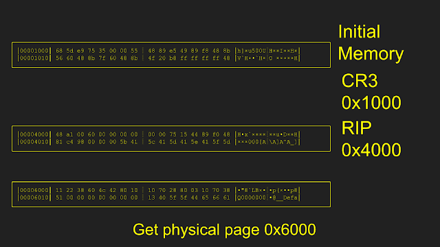 - SNAPSHOT_translate_0xc3000_0x120000: Translates the guest virtual address (second) using the CR3 (first).