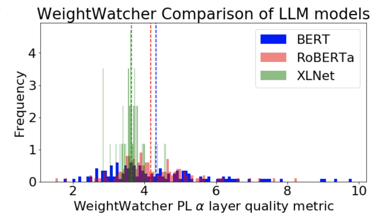 WeightWatcher is an open-source, data-free diagnostic tool that can estimate the quality of an DNN model like BERT, GPT, etc–without needing any data! (No training or test data–just the weights). It has been featured in JMLR, at ICML and KDD, and even in Nature.