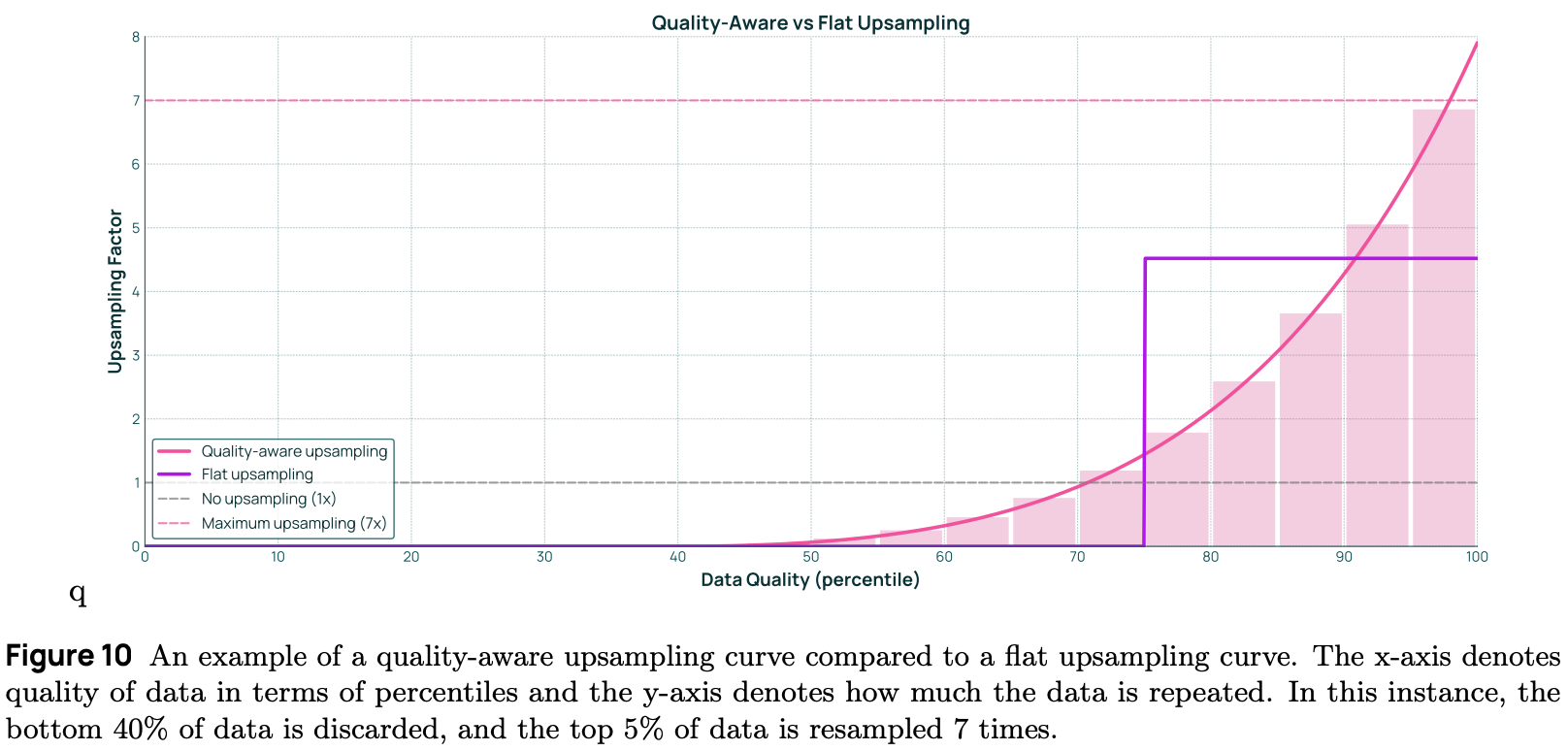 “We found that quality-aware upsampling improves performance in data-constrained settings… We achieved better results by upsampling the highest-quality data: including multiple copies of the top 5% and single copies of the remaining data to reach the target token count.” - from [1]