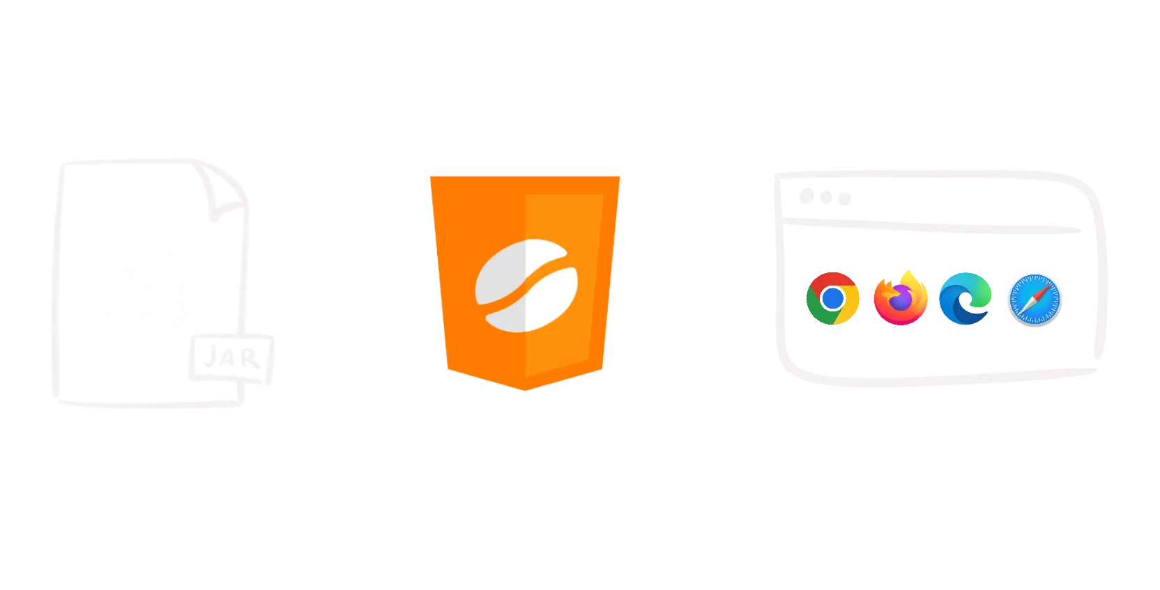 CheerpJ has been tested on Oracle Forms, EBS, Swing, AWT, and numerous frameworks and libraries. It should be able to run Java SE applications that you would otherwise need a Java Runtime Environment for. ↩