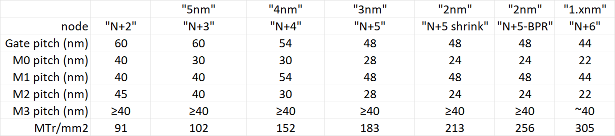 At the “2nm” node, the transition to buried power rail is expected, which enables the cell height to go from 6 tracks to 5 tracks.