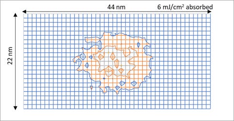 Figure 3. Absorbed photon density (1 nm pixel) for a 22 nm x 11 nm via on 44 nm x 22 nm pitch, with 6 mJ/cm2 absorbed EUV dose.