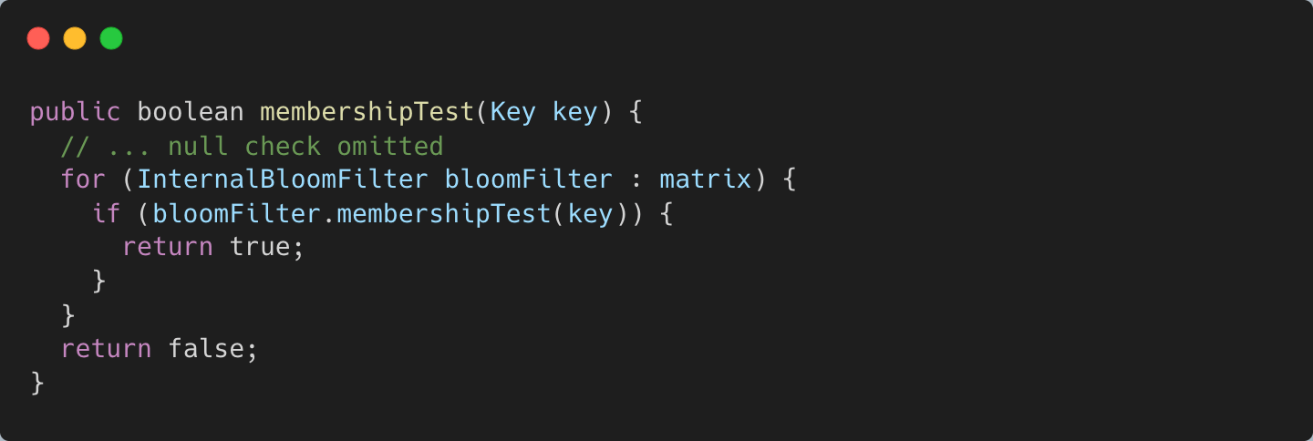Each element in matrix is an InternalBloomFilter object, adapted from Apache Hadoop’s implementation.