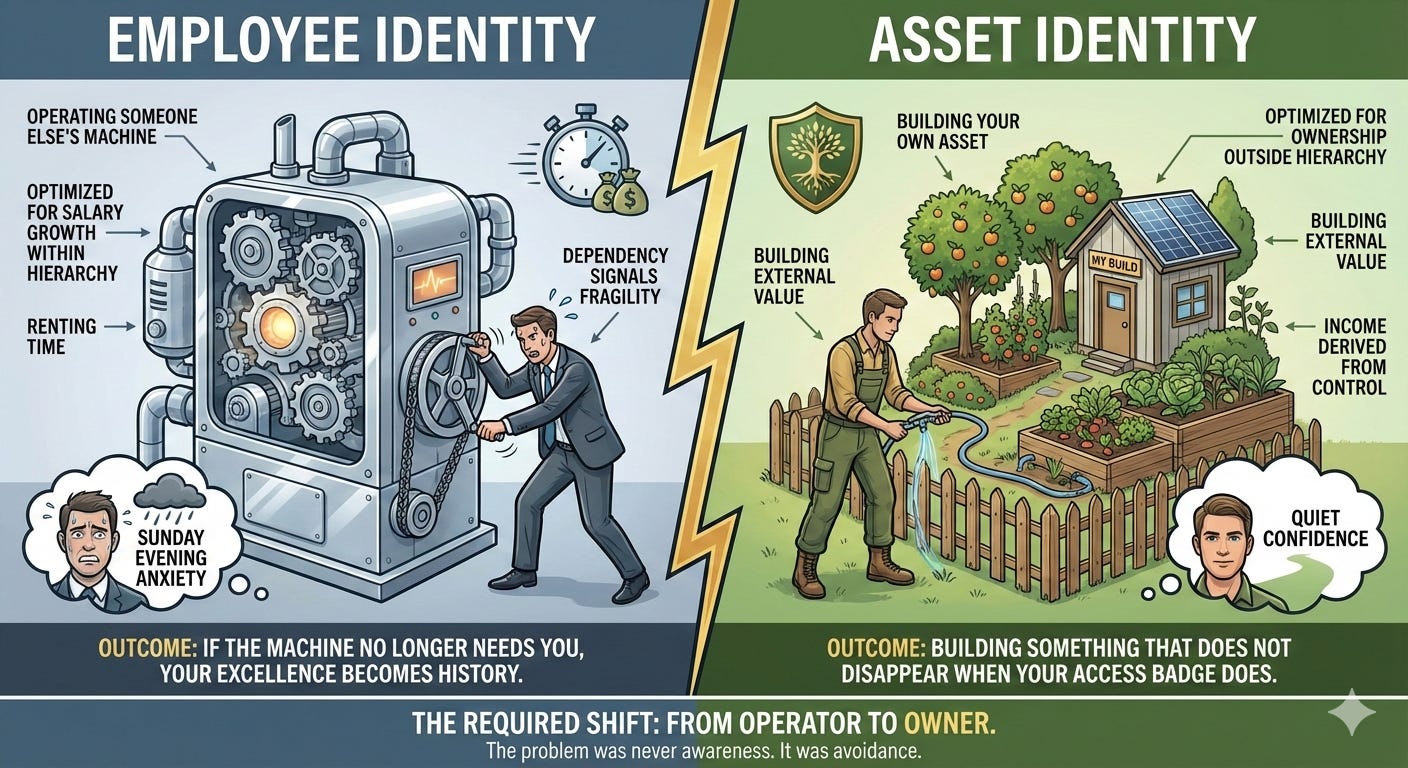 You have optimized for salary growth within a hierarchy. You have not optimized for ownership outside of it. The former looks impressive. The latter is quiet and harder. It requires building something that does not disappear when your access does.