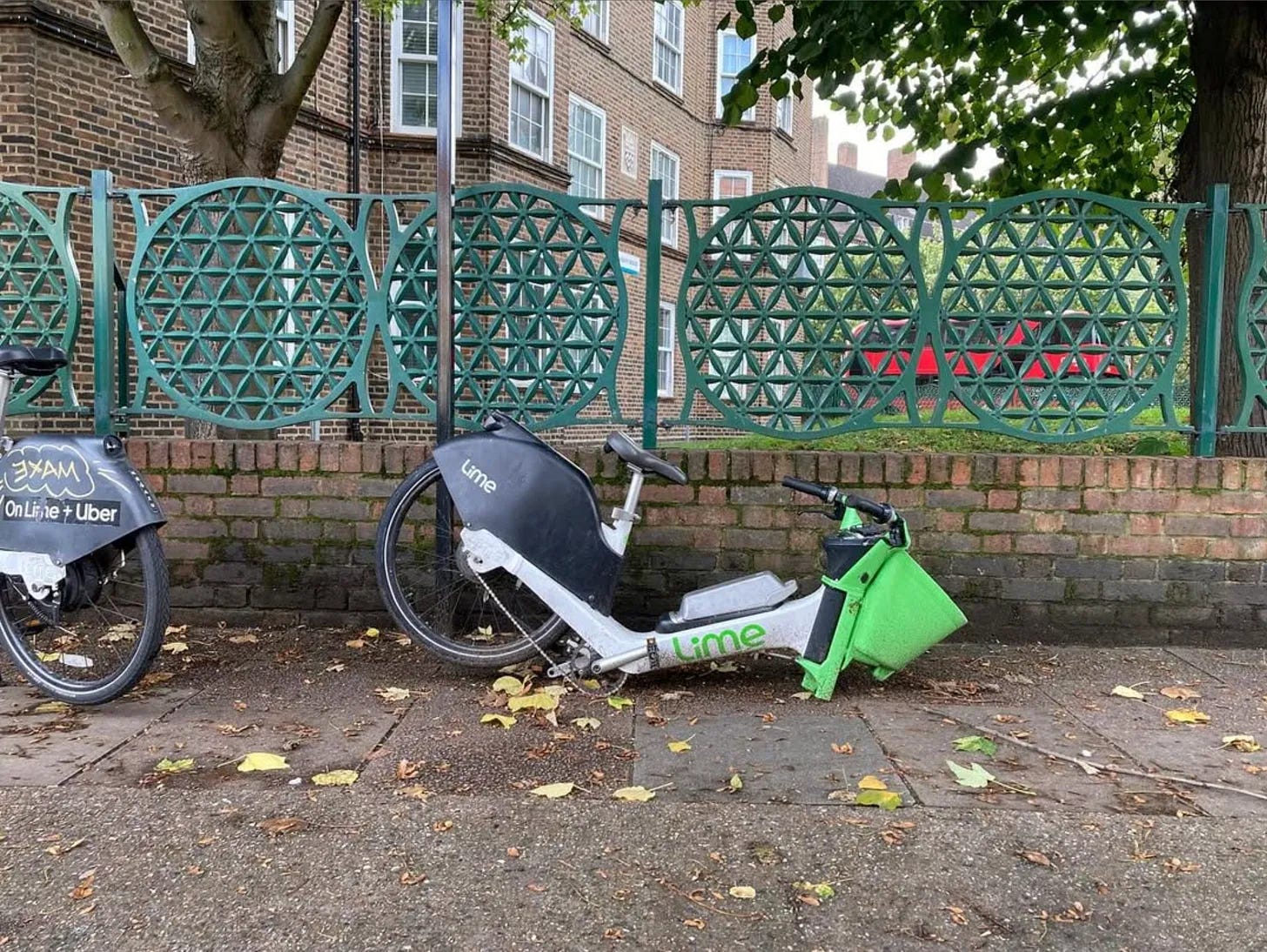 Walking around London here in 2025, one rarely feels like a mammal living together in mutual harmony with programmed machines. I recently walked past this mangled Lime Bike just off Peckham Park Way which resembled an animal carcass out in the wild. This mammal has come a cropper in the cybernetic meadow.
