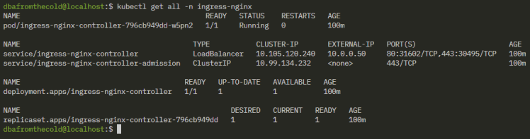 This cluster only has the one pod in the default namespace (the nginx pod) so the results will be: –