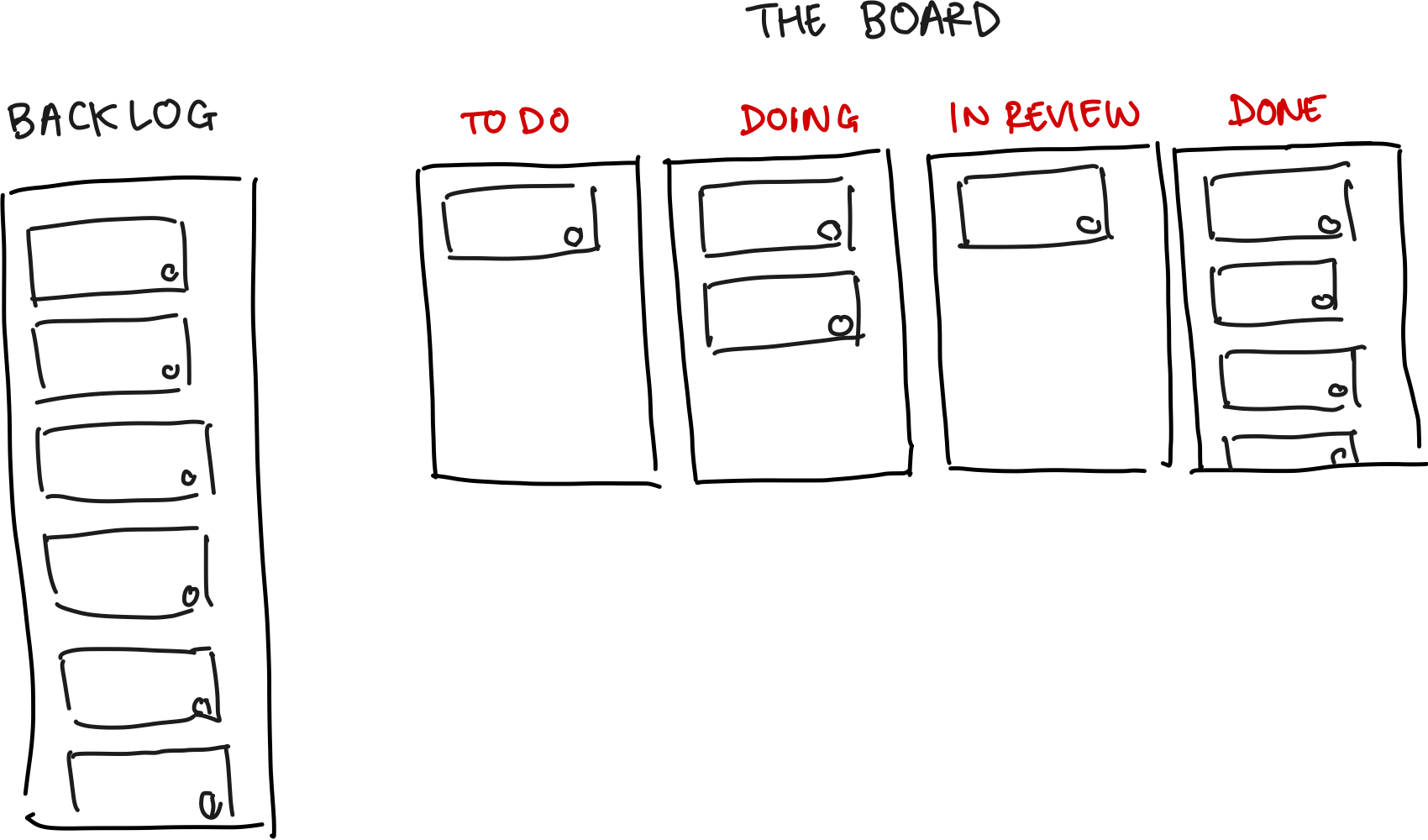 - Tasks: bits of work that need to be done, typically taking 1 – 12 hours