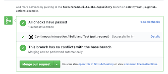 The sibling of the continuous integration discussed above is continuous deployment. This is the automation of deployment of your code: when you merge a PR into a given branch, the code is deployed to a specified environment.