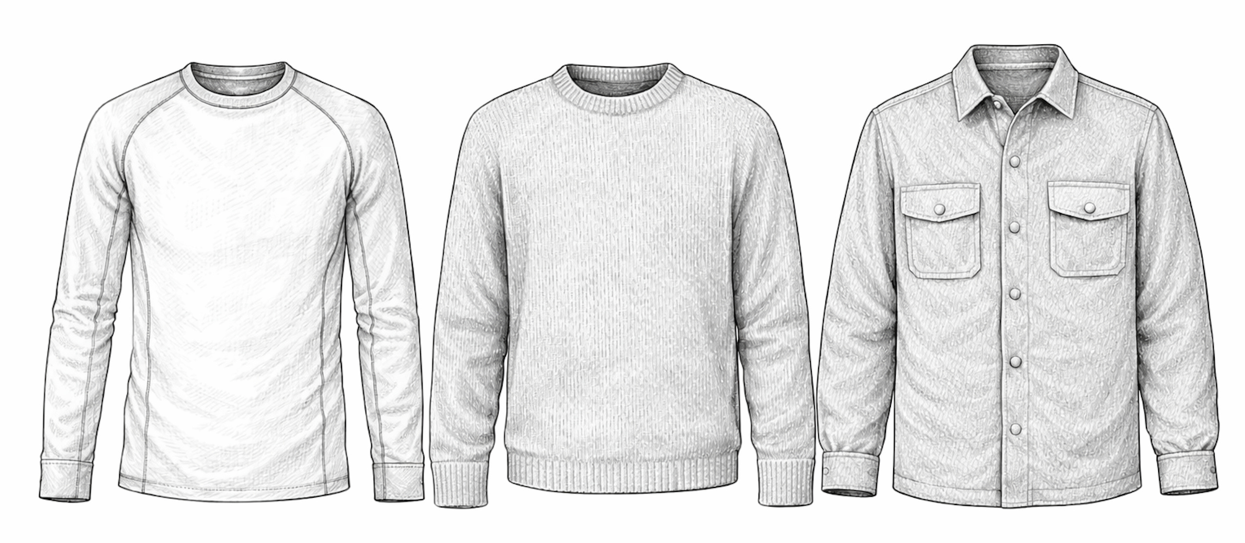 At home I have a few woollen tops that I layer with in late autumn and winter. Some of them are merino wool thermal layers that go under a hoodie on a cold day (Icebreaker, Prana and outdoor brands like Marmot & Patagonia all make them) and others are thin wool shirts that I wear a flannel shirt or corduroy jacket above. Having an overshirt to layer with makes it easy to adjust how warm I’m feeling and makes for fun colour combinations. Practically all men’s wear brands make them and they’re often cheap to come by used if you’re not picky about the brand. For proper cold days I have a couple of chunky knits as backup, but they’re too bulky to wear other things over so I find them a bit less versatile. Finisterre makes a bunch that are high quality and made sustainably with a rugged aesthetic. Peregrine fits the same niche, albeit slightly more old-fashioned and all made in England.