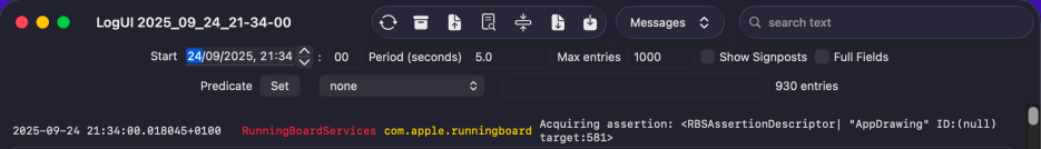 In light mode, with default transparency, tool icons and text are clearly distinguished tonally, as are some controls including buttons and checkboxes. However, text entry fields are indistinguishable from the background, and there’s a general lack of demarcation, particularly between the controls and the list view below.