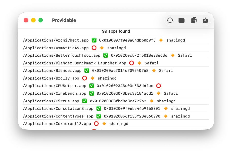 Providable requires macOS 14.6 or later, I’m afraid, but in return for that it appears to perform quite well even when handling large numbers of apps and files.
