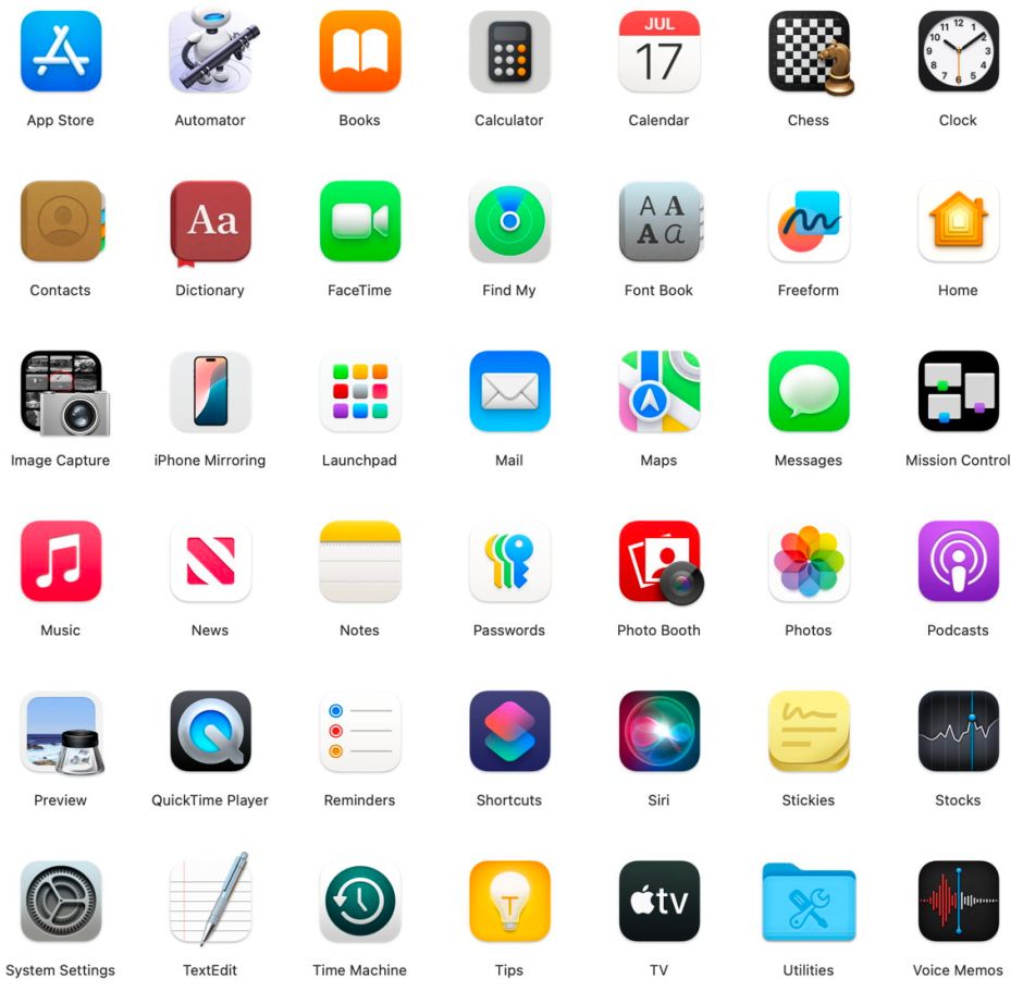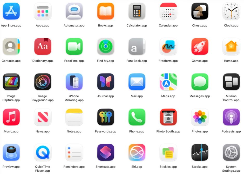 Above are most of the apps bundled in Sequoia, and below are those in Tahoe.
