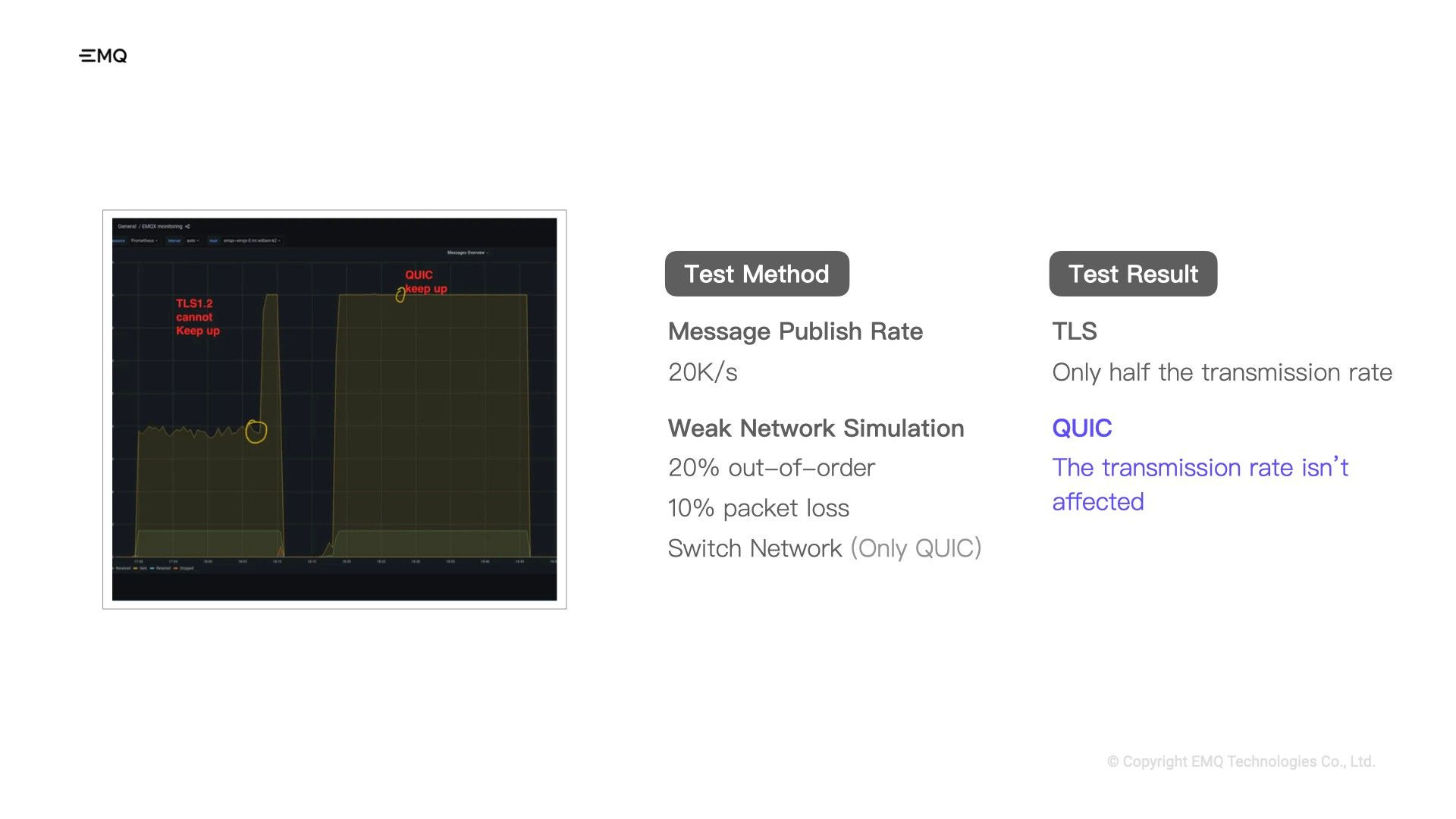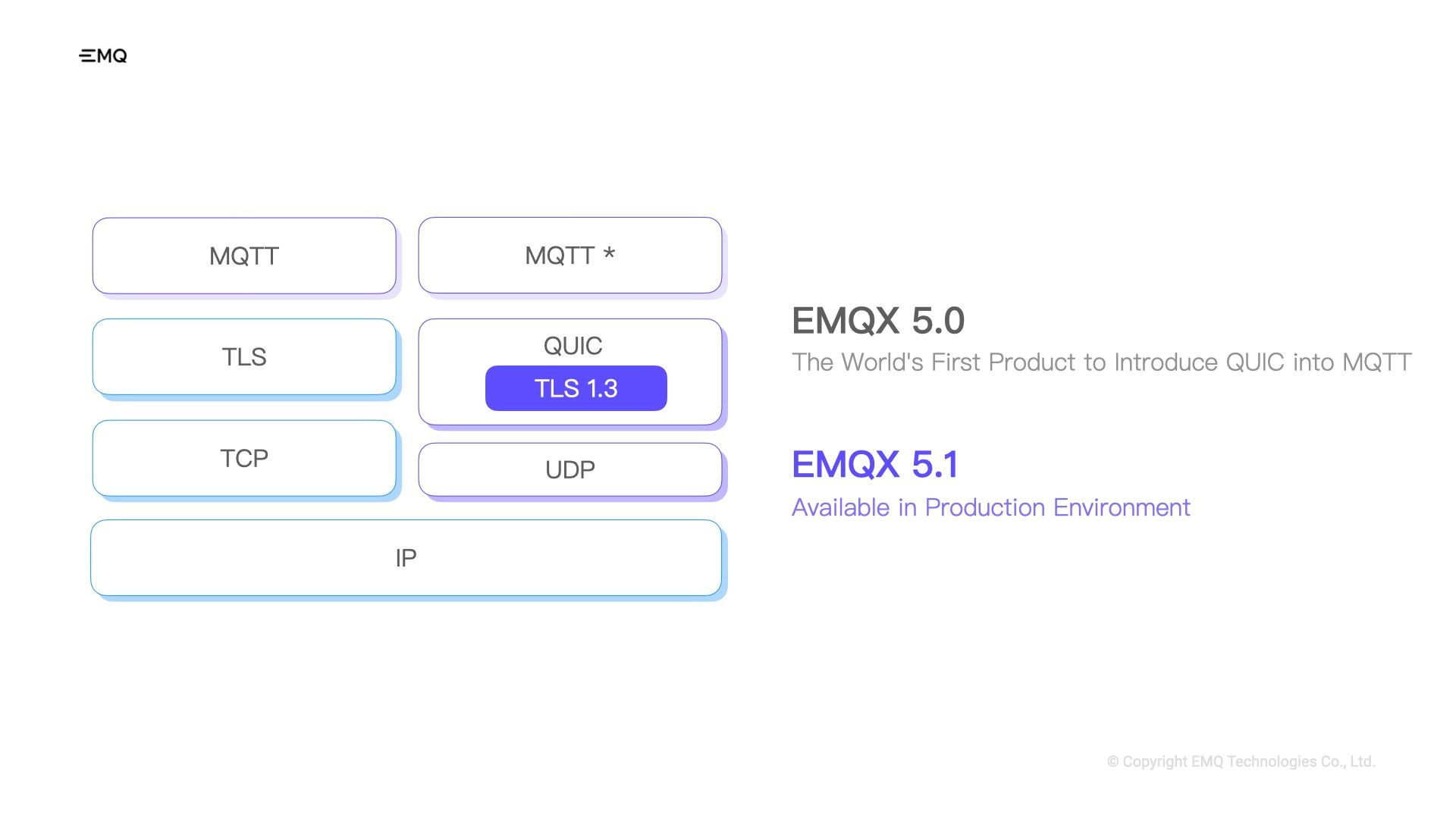 Furthermore, EMQ is actively striving to integrate MQTT over QUIC into the MQTT protocol standard. We firmly believe that this integration will accelerate the industry's adoption of MQTT over QUIC, enabling everyone to experience its exceptional benefits.