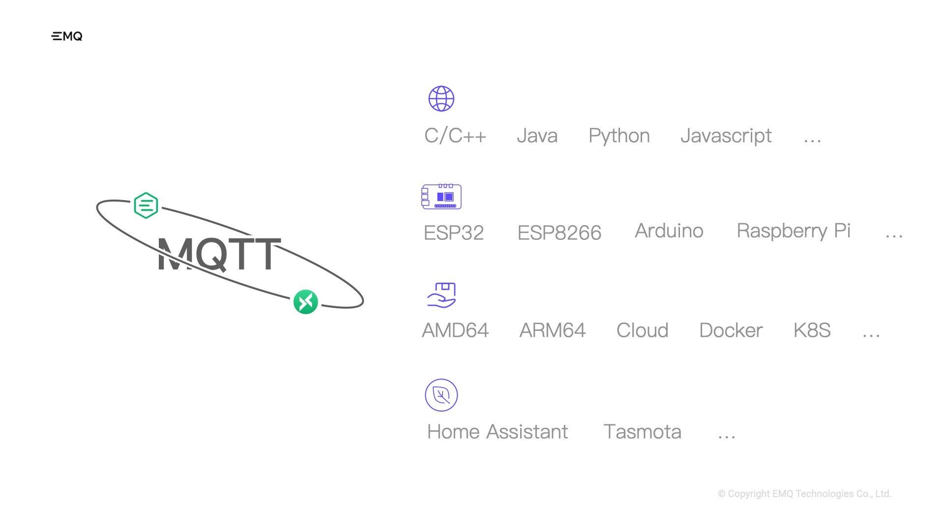 The MQTT ecosystem is highly mature. No matter what platform you are on or what hardware you use, you can easily find a matching software stack. Compared to other protocols, users could easily adopt MQTT technologies at a low cost.