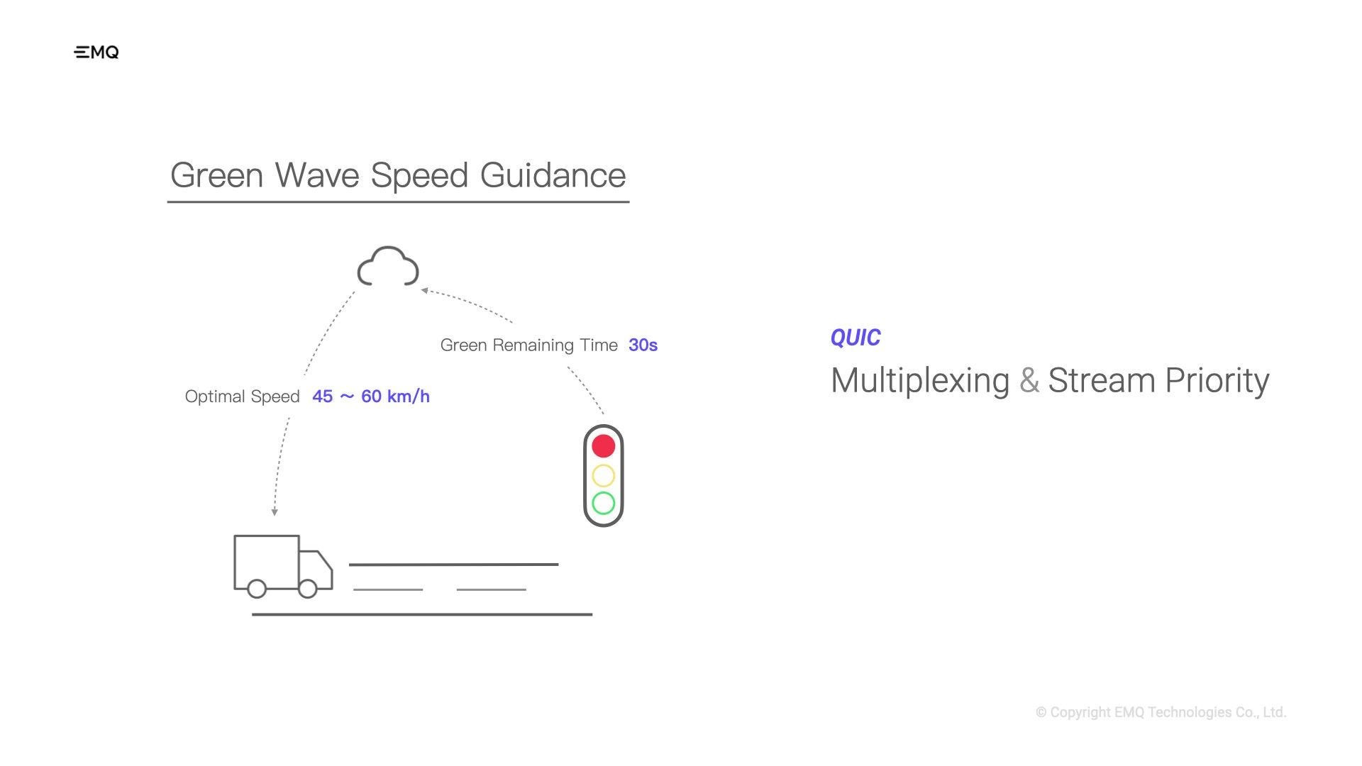 Furthermore, QUIC proves valuable in delivering time-sensitive messages to vehicles, such as green wave speed guidance. By calculating the ideal speed based on distance and traffic light countdown, drivers can adjust their speed to avoid unnecessary stops at intersections. To ensure that these critical messages are not delayed by less important ones, QUIC leverages its multiplexing features and stream prioritization, allowing for efficient and timely data delivery.