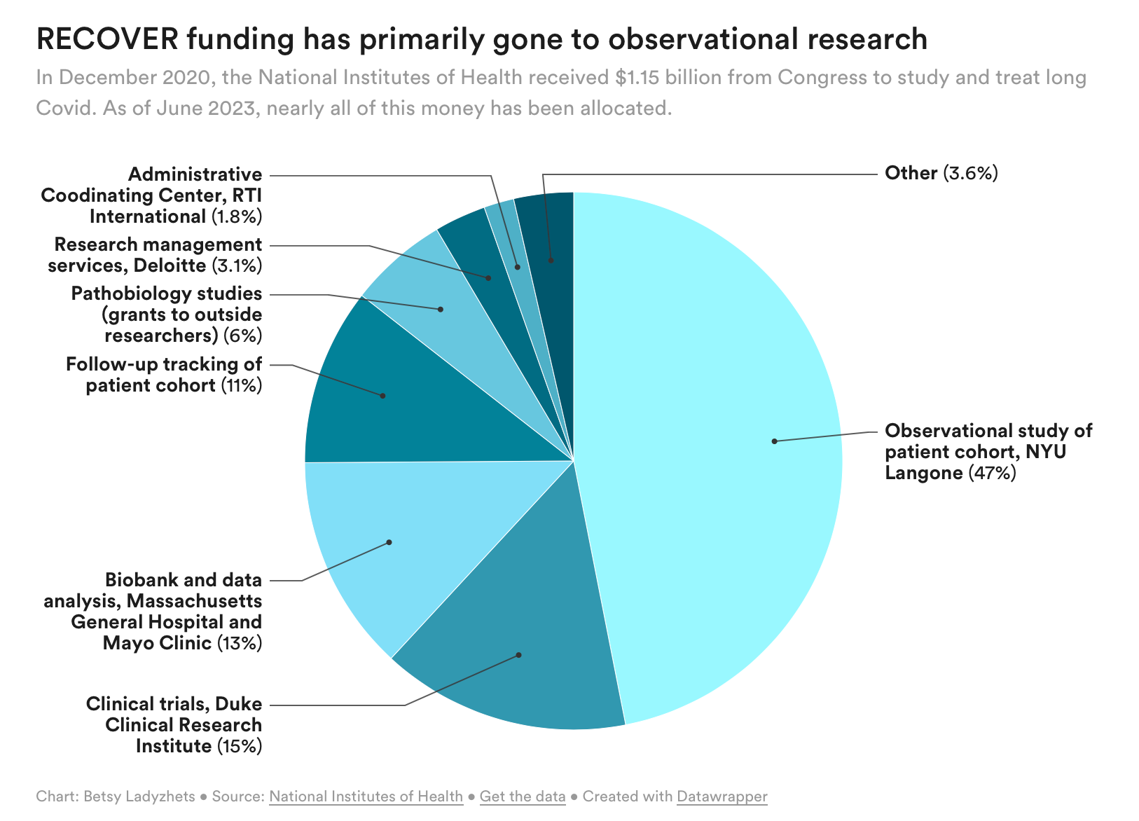 STAT news exposed what has happened with the $1.15 billion allocated to the NIH RECOVER Long Covid initiative, announced in December 2020. The funds are now almost totally accounted for and there very likely won’t be any new support via Congress to NIH.