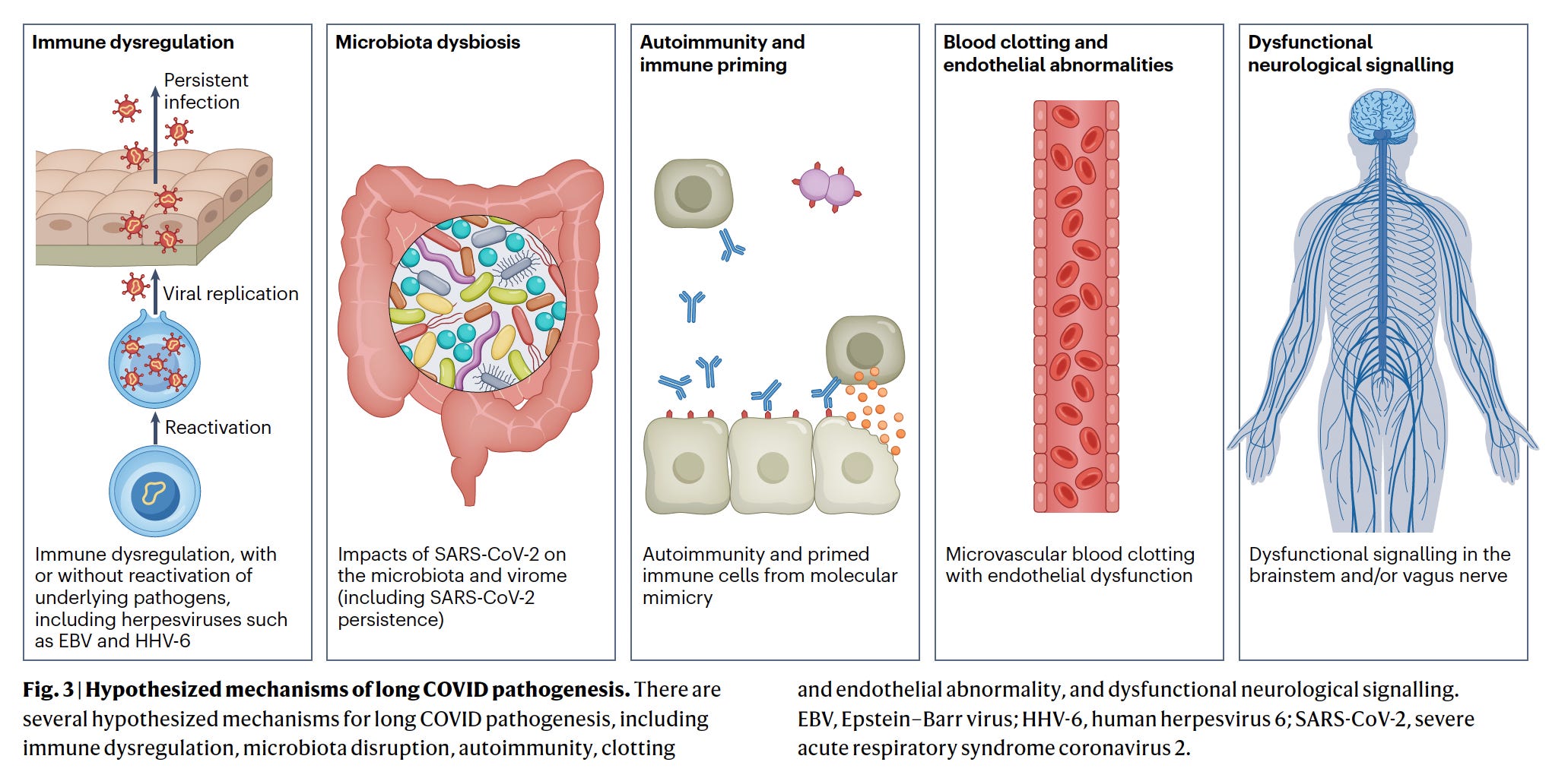 When we published our review of Long Covid earlier this year, we highlighted the key established underpinnings as shown in the Figure below. As you’ll note, mitochondria was not one of them. There was a body of data emerging to support the role of mitochondria, as we asserted: ”Long COVID research has found mitochondrial dysfunction including loss of mitochondrial membrane potential and possible dysfunctional mitochondrial metabolism, altered fatty acid metabolism…” and that this had also been seen in myalgic encephalomyelitis (ME/CFS).