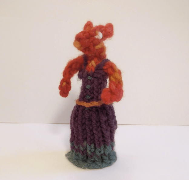 Inspired by the Paracas Textile figures above, I used cross-knit-looping to make this little fox lady fingerpuppet: