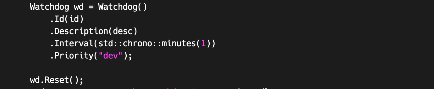 Creation of watchdog entries in the monitoring software should be zero config. That is to say on the first receipt by the monitoring program of a new watchdog reset message, be it a new app, an app running on a different machine for the first time, etc., a new watchdog timer should be automatically created and activated by the monitoring software. While this can cause rogue watchdogs to be accidentally created when, for example, a developer runs a program as a test, there are ways to reduce or prevent this. If we required someone to get on a webpage and submit something to create a watchdog timer, the extra cognitive load would cause developers to create far fewer of them, and we would miss a lot of them, meaning stuff would break and we wouldn’t hear about it when a service was moved to a new machine or data center, etc.