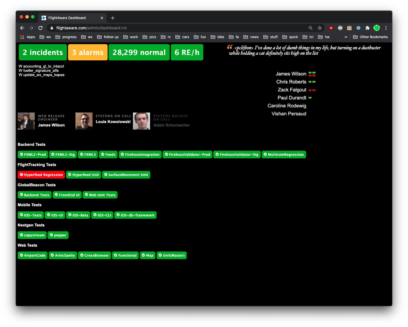 As we have grown, and the size of our engineering staff has grown, we have evolved these mechanisms to greater levels of sophistication. Developers during development can redirect their watchdog alarms, using wildcards, away from the Slack channels the systems people use, sending them instead to Slack channels dedicated to their crew or particular application, freeing our systems folks from having to wade through dev alarms while looking for real production problems.