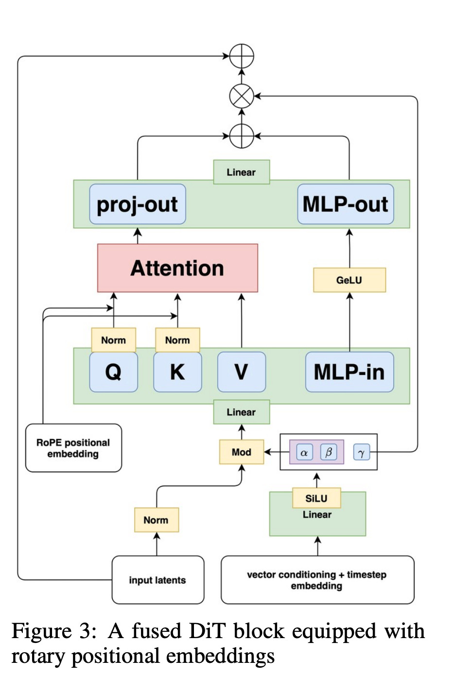 For simplicity’s sake we will skip over the activation function FLOPs, RoPE and rectified flow update as they take up almost no FLOPs in comparison to the pass through. However Tensor Economics covered quite clearly in their LLM inference economics essay on RoPE in case you are interested.