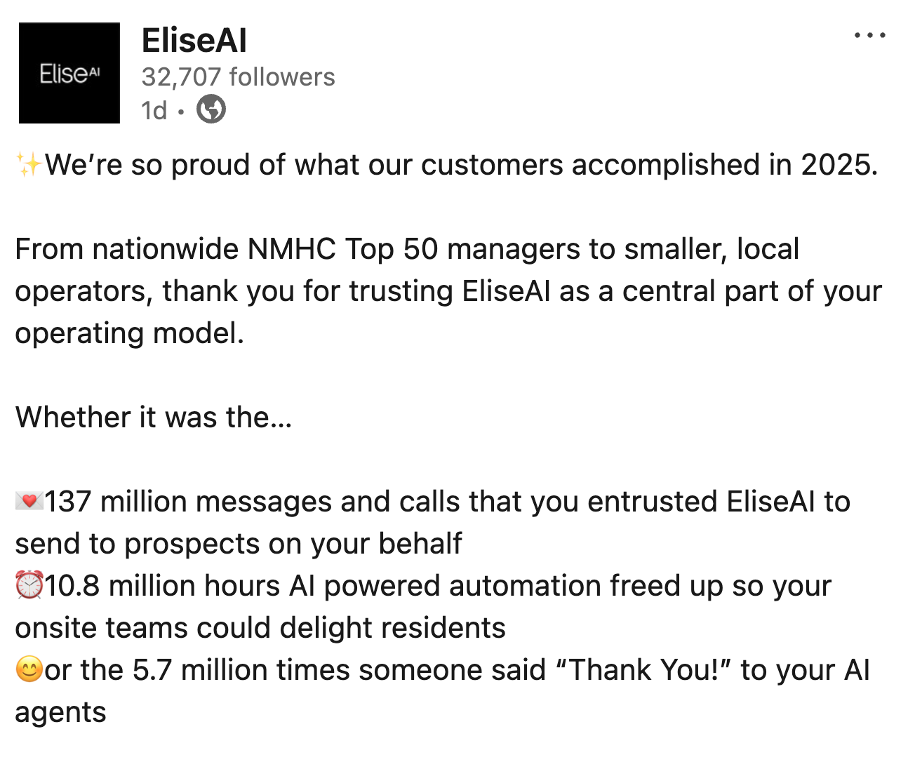 A great example is Elise AI: